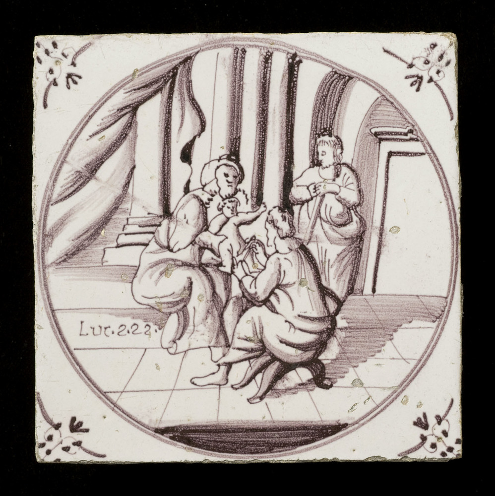 Tegel in tinglazuur, voorstellende luc. 2:22 De besn...
