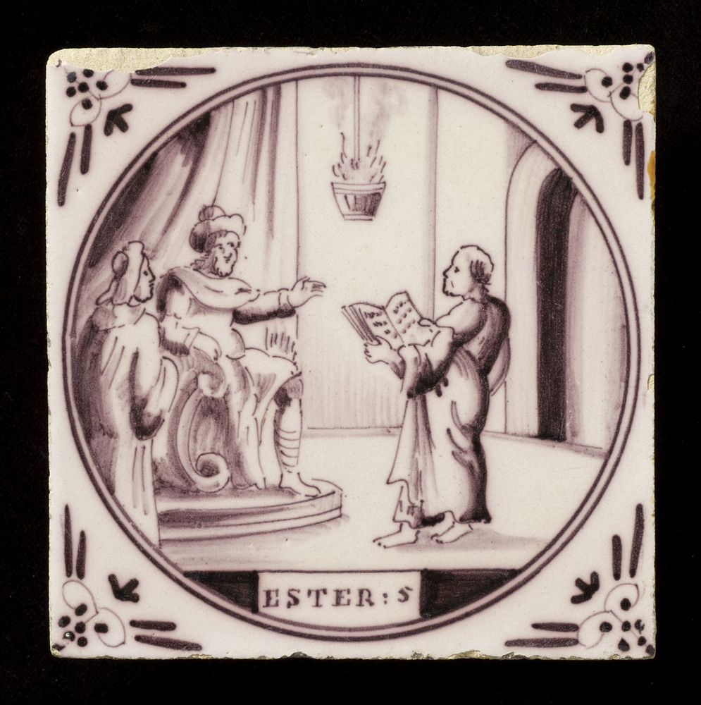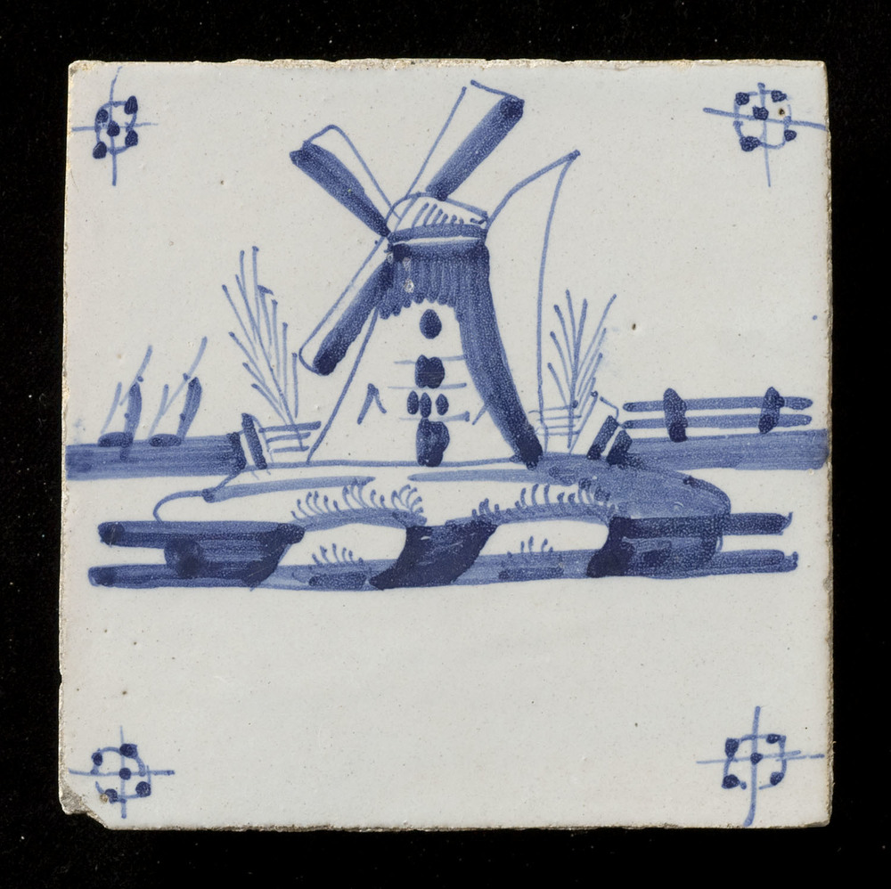 tegel van aardewerk met tinglazuur, voorstellende: h...