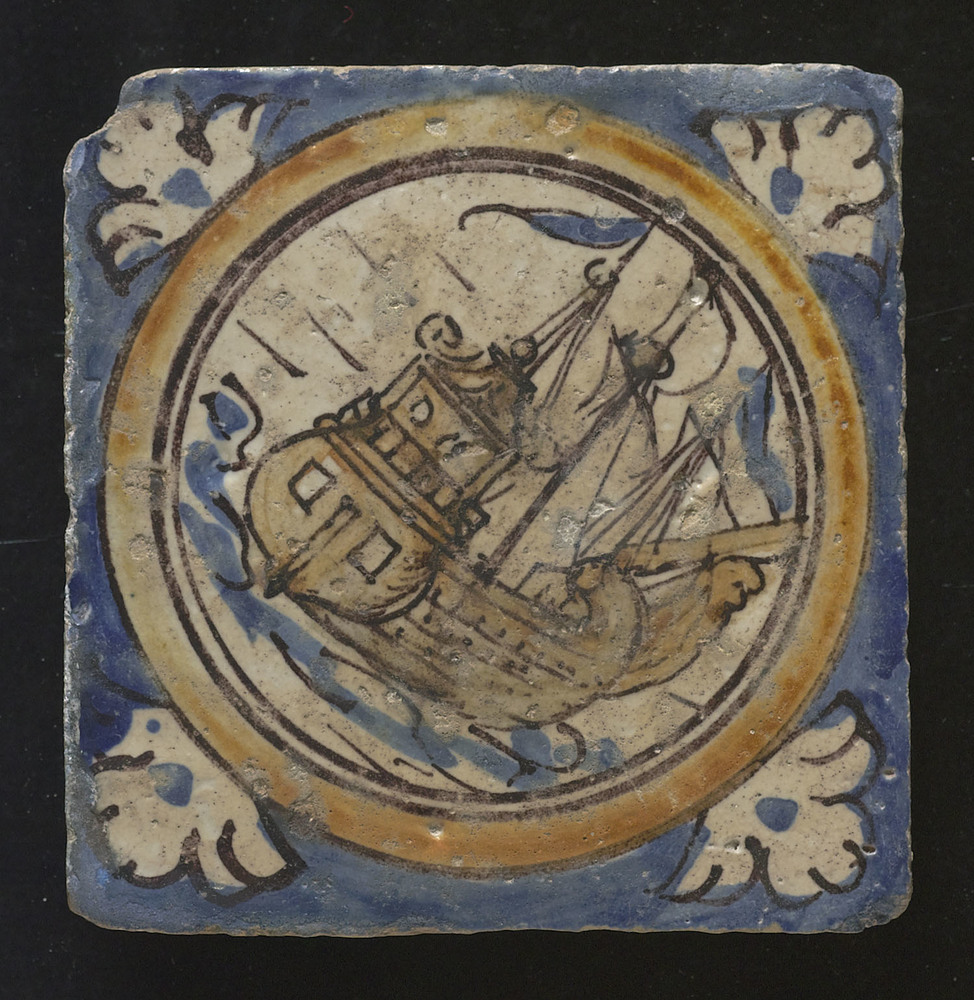 Tegel van keramiek, tinglazuur, voorstellende een la...
