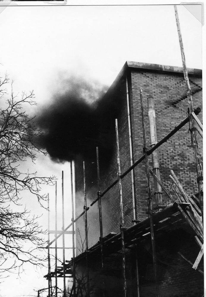 Zwart-wit foto van de verhuizing van een kleuterscho...