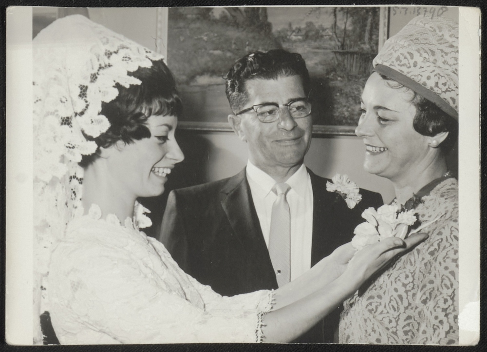 Zwart-wit foto van de installatie van pastoor Bones ...