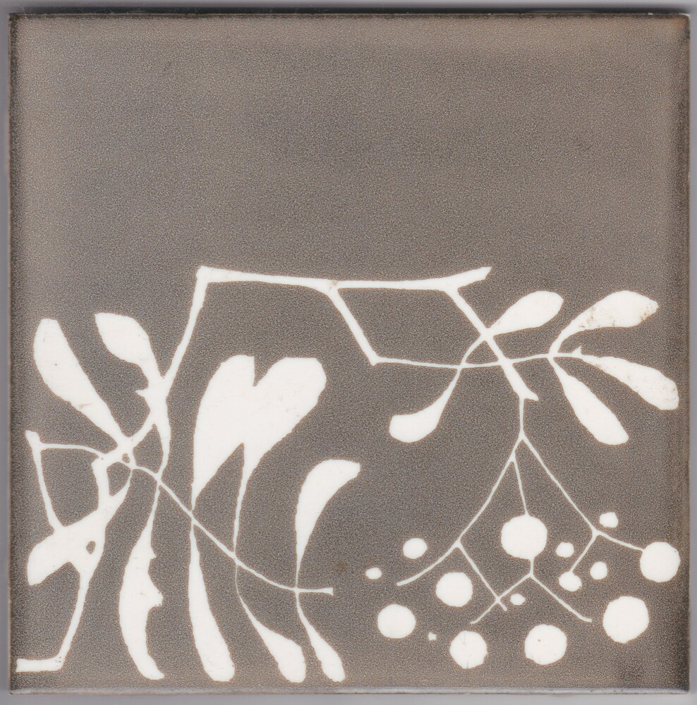 Tegel in zeefdruk, met voorstelling: decor Mountain ...