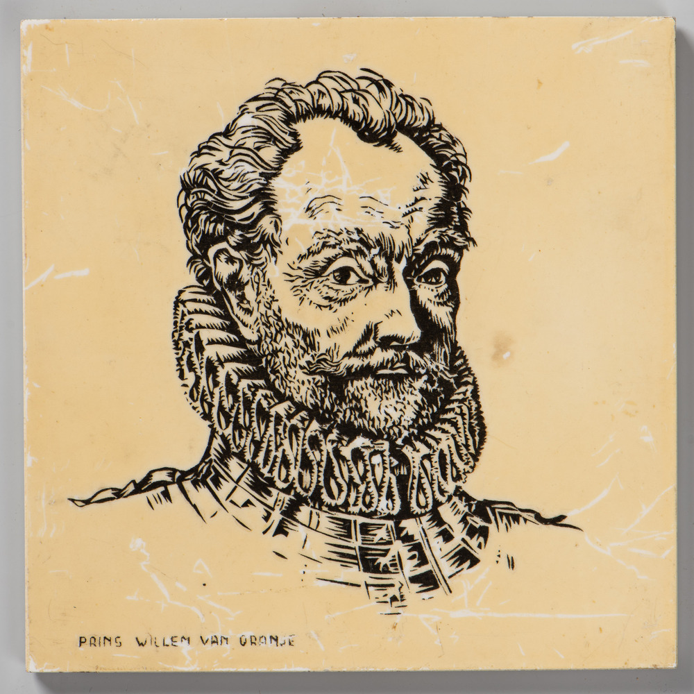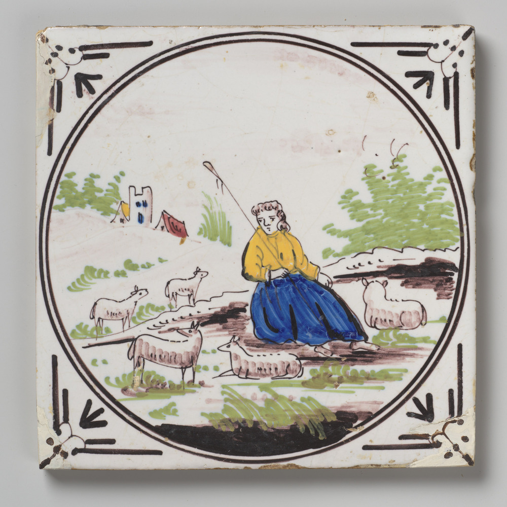 tegel van aardewerk met tinglazuur, voorstellende: h...