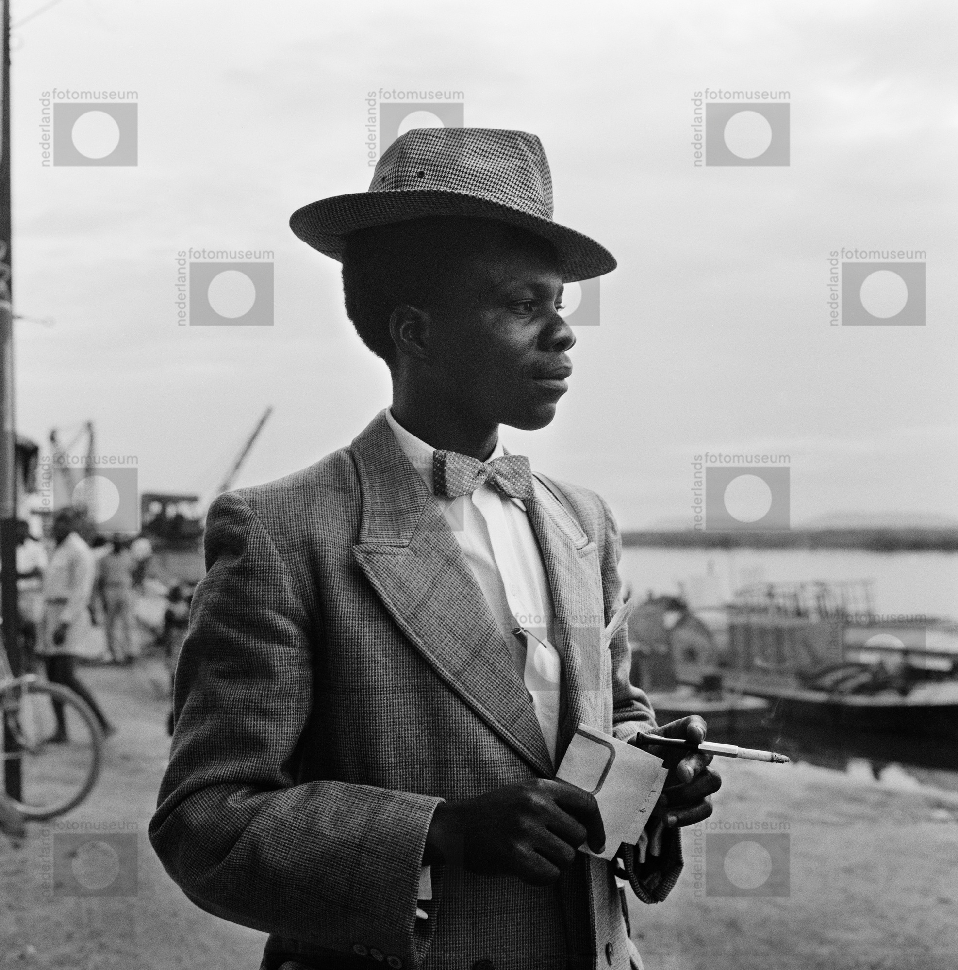 Sapeur in de haven van Muyumba, Congo, 1958