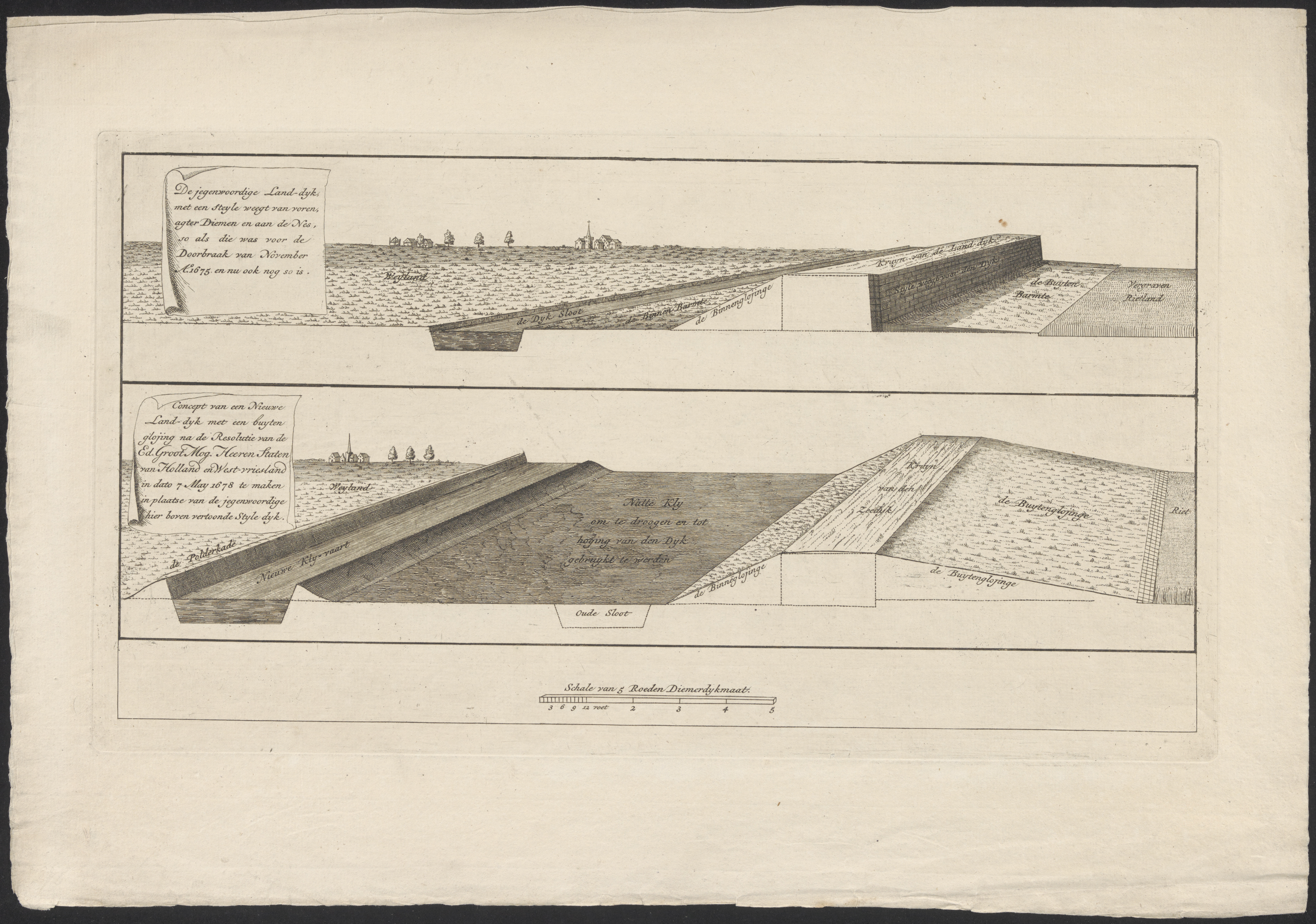 Doorbraak der Zeedyk by Harlingen in Febr. 1825