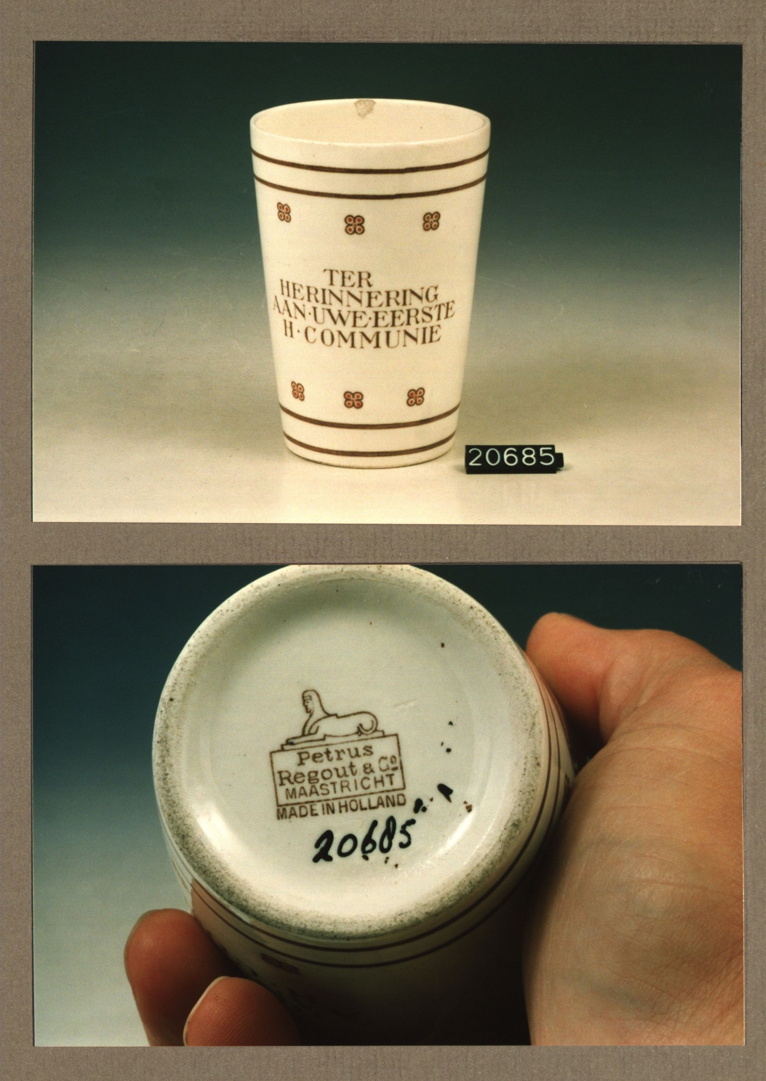 Beker met opschrift, model Gewoon met decor Communie