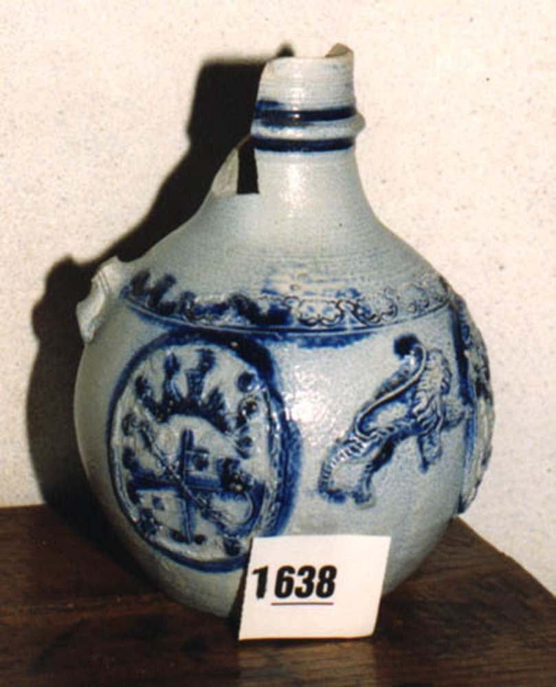 Kruik "Kruikje, versierd met wapenschilden en leeuw"...