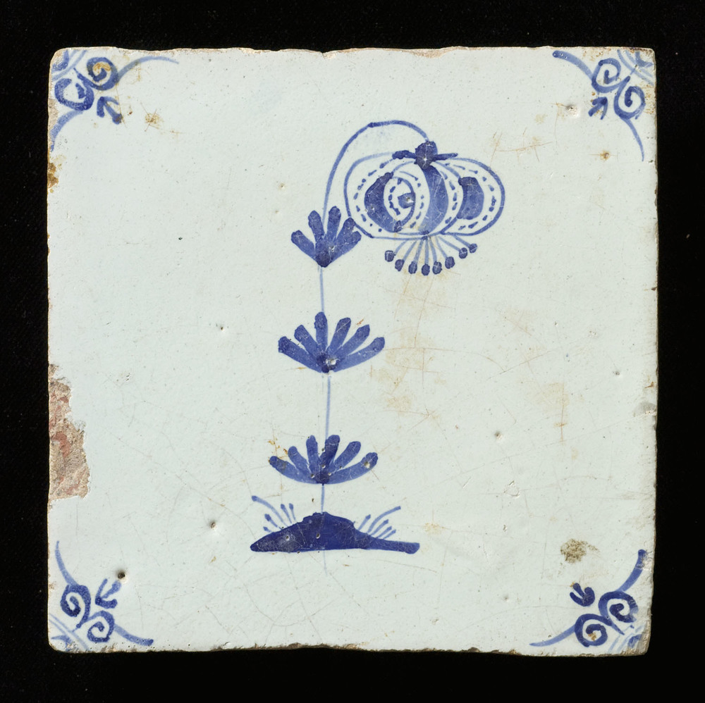 Tegel van keramiek, tinglazuur, voorstellende een bl...