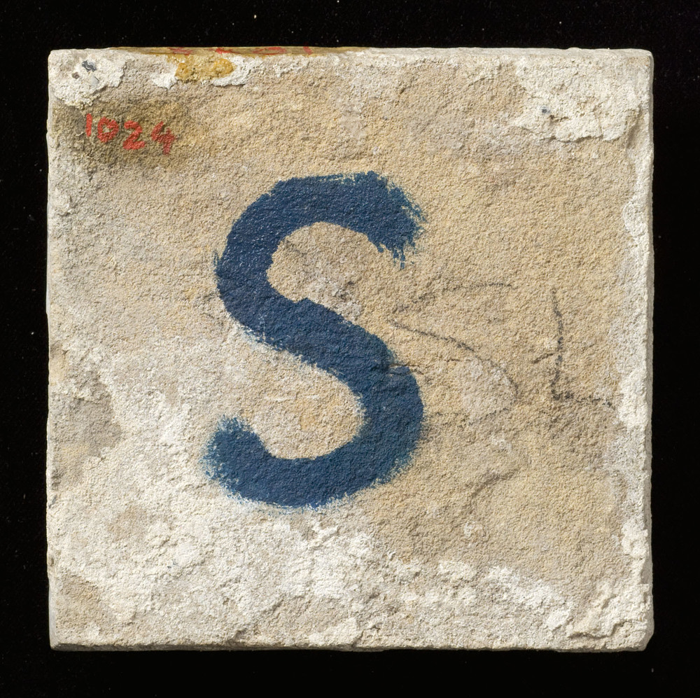 Vloertegel van keramiek, reliëf, waarschijnlijk gema...