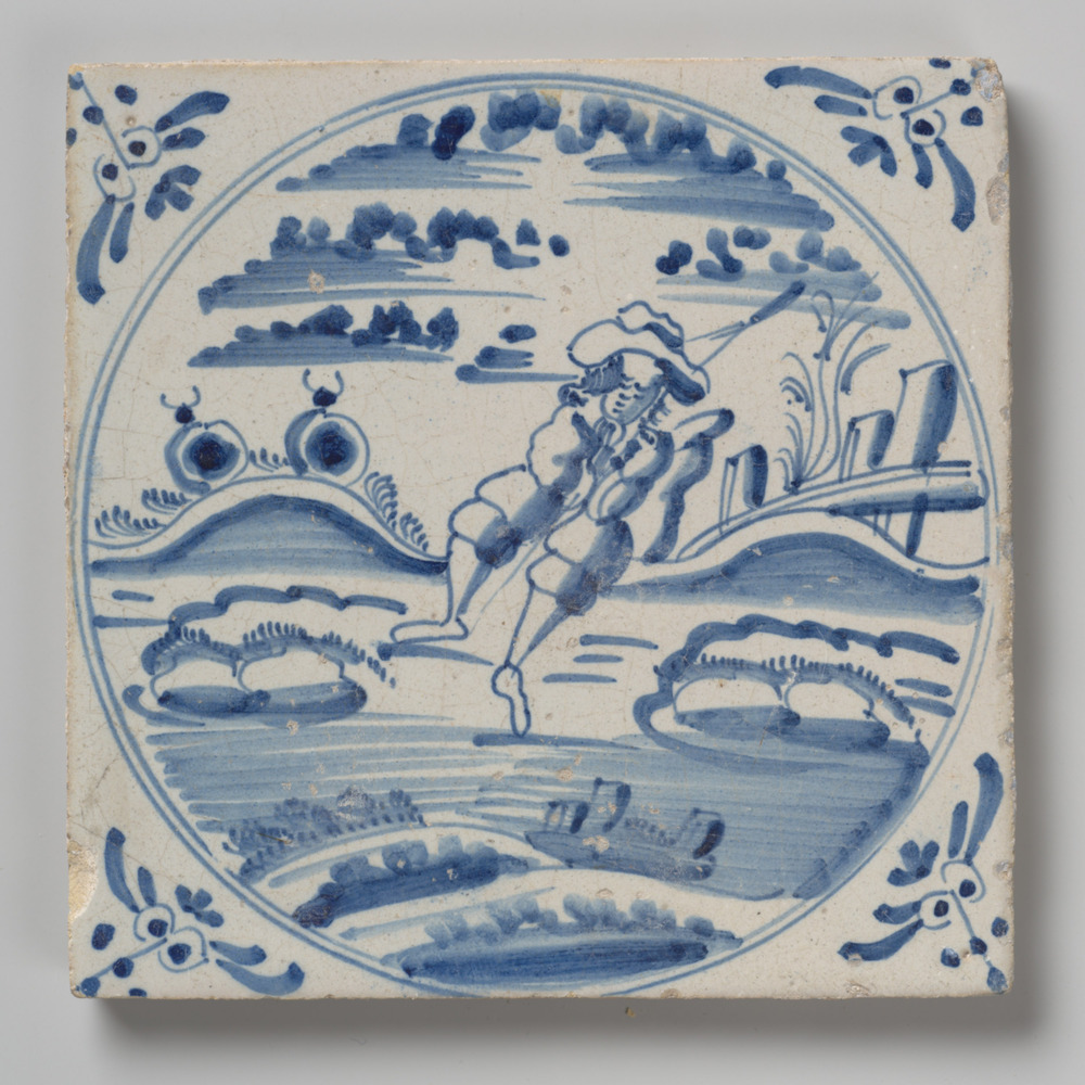tegel van aardewerk met tinglazuur, voorstellende: h...