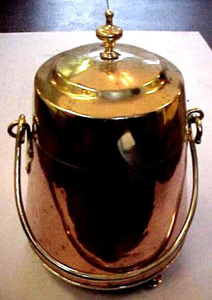 buikkruik van geelkoper, rechthoekig, plat model en ...