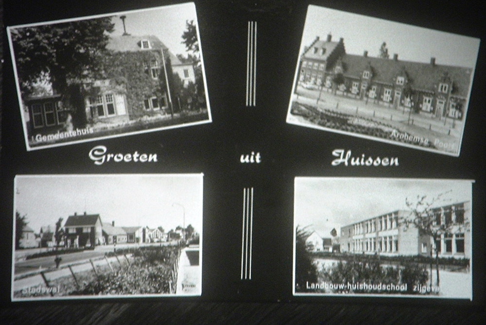 Ansichtkaart samengesteld uit vier foto's over Huissen