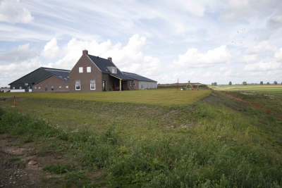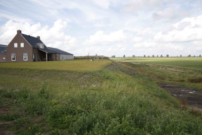 Nieuwe boerderij op een terp in de Overdiepse polder...
