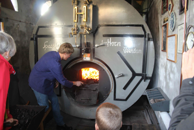 Bijvullen van kolen in de ketel van het Puttergemaal...