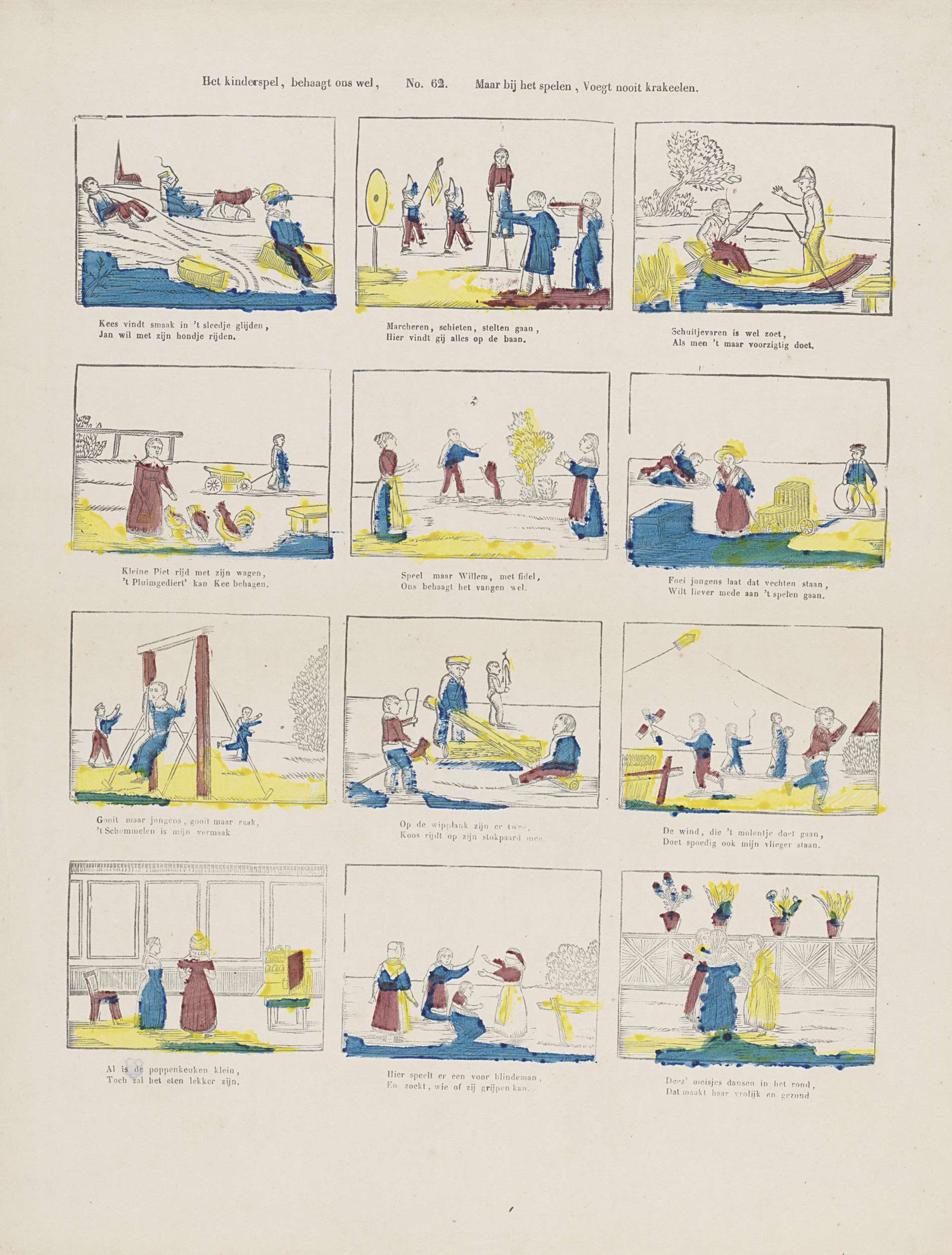 Het kinderspel, behaagt ons wel, / Maar bij het spel...