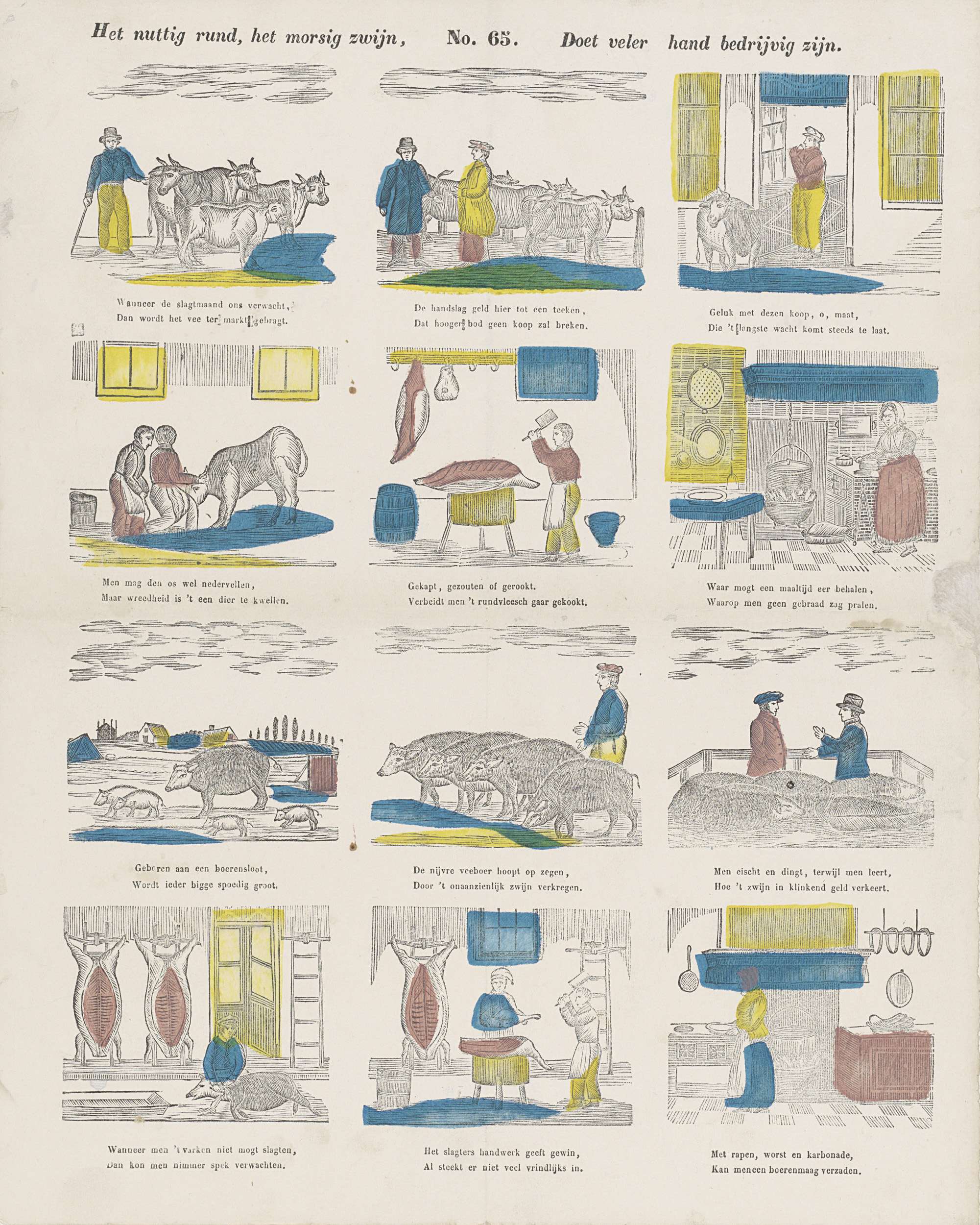 Het nuttig rund, het morsig zwijn, / Doet veler hand...