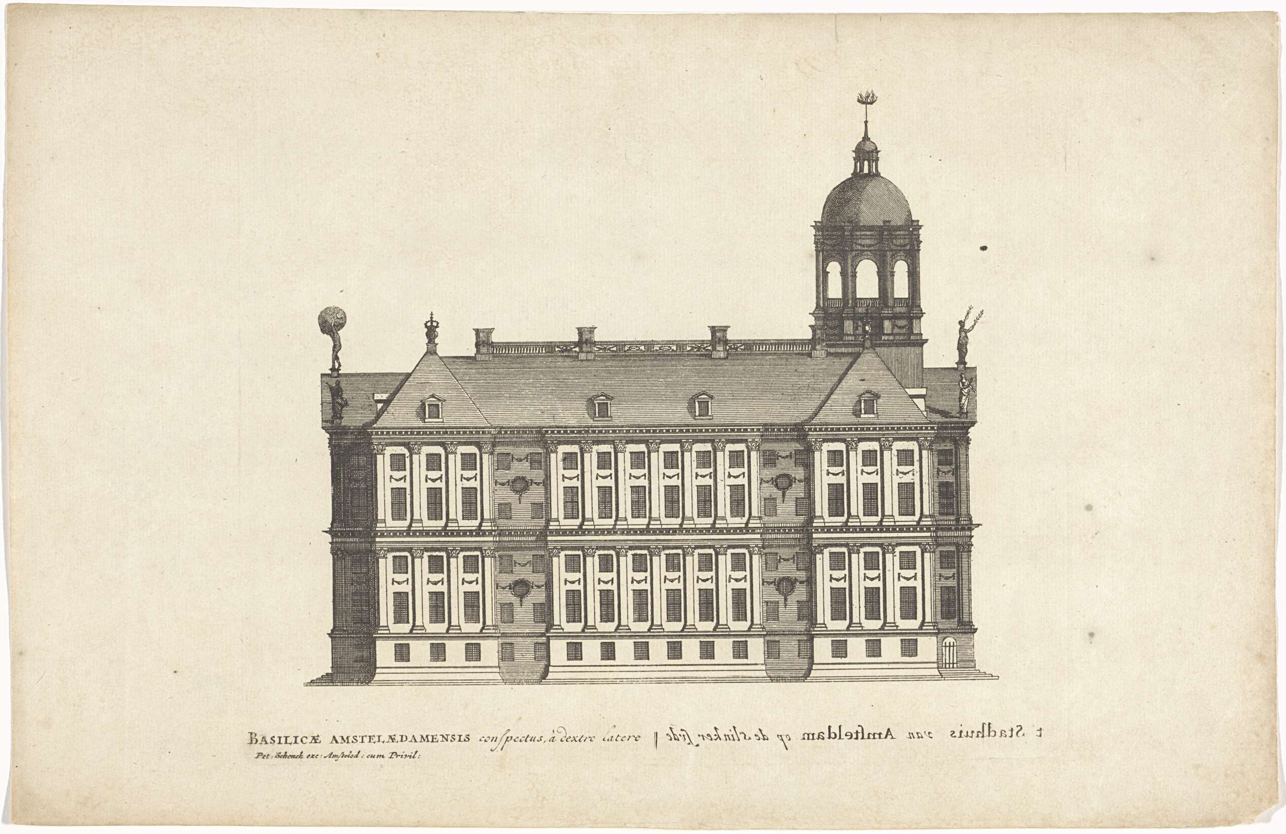 Gezicht op de zijgevel van het Stadhuis op de Dam va...