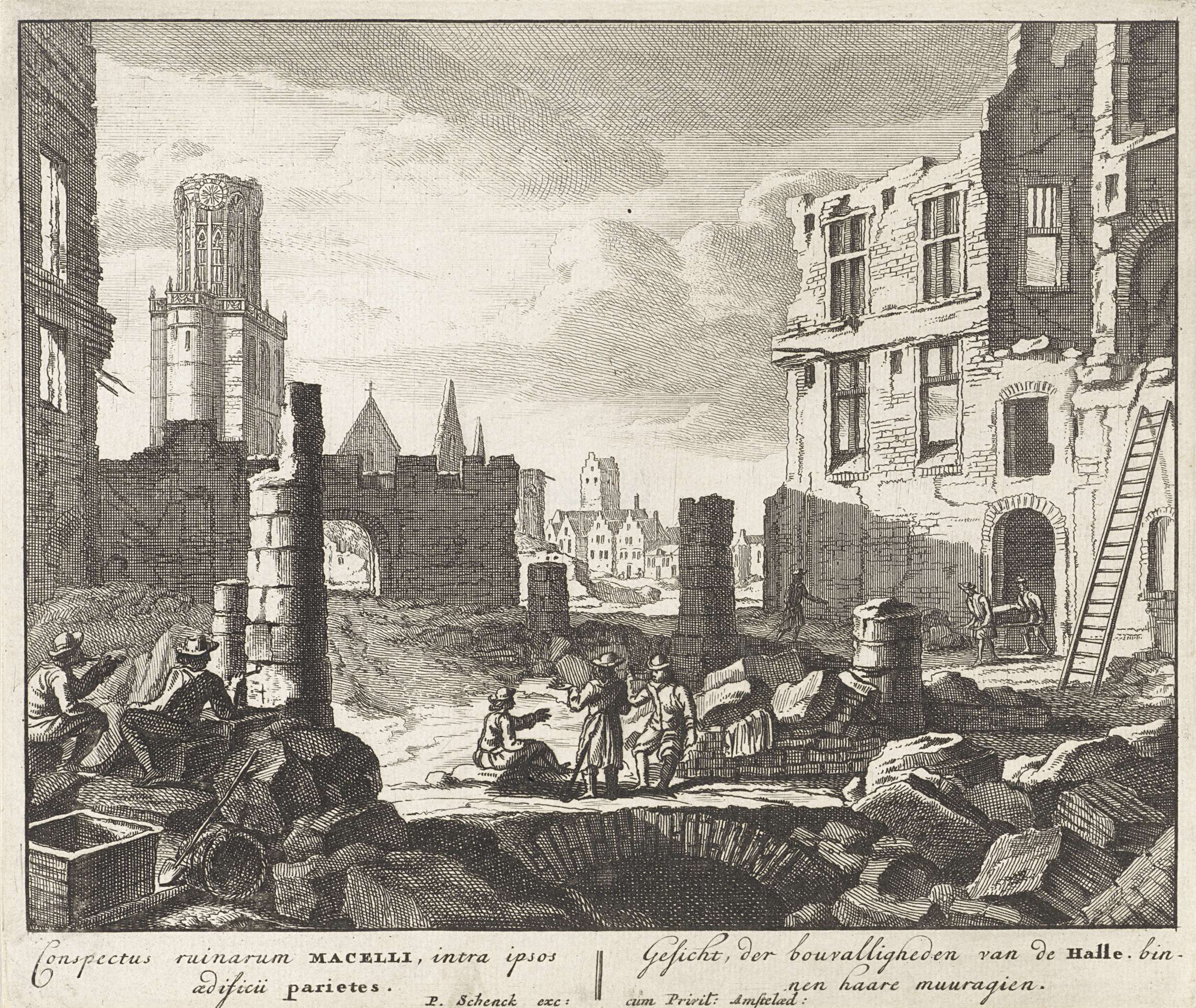 Ruïnes in de Wagenstraat te Brussel, 1695