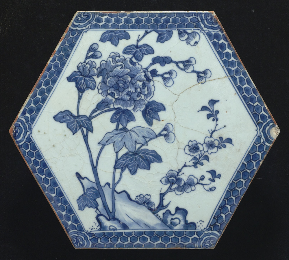 tegel van aardewerk met tinglazuur, voorstellende: h...