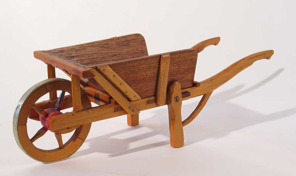 Kruiwagen van hout, miniatuur, vervaardigd door Hein...