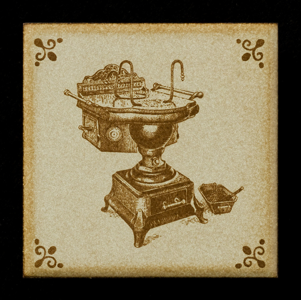 Tegel in druktechniek, met voorstelling: ouderwetse ...