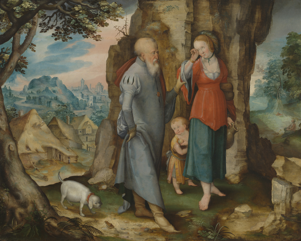 Paneelschildering "De verdrijving van Hagar" op gren...