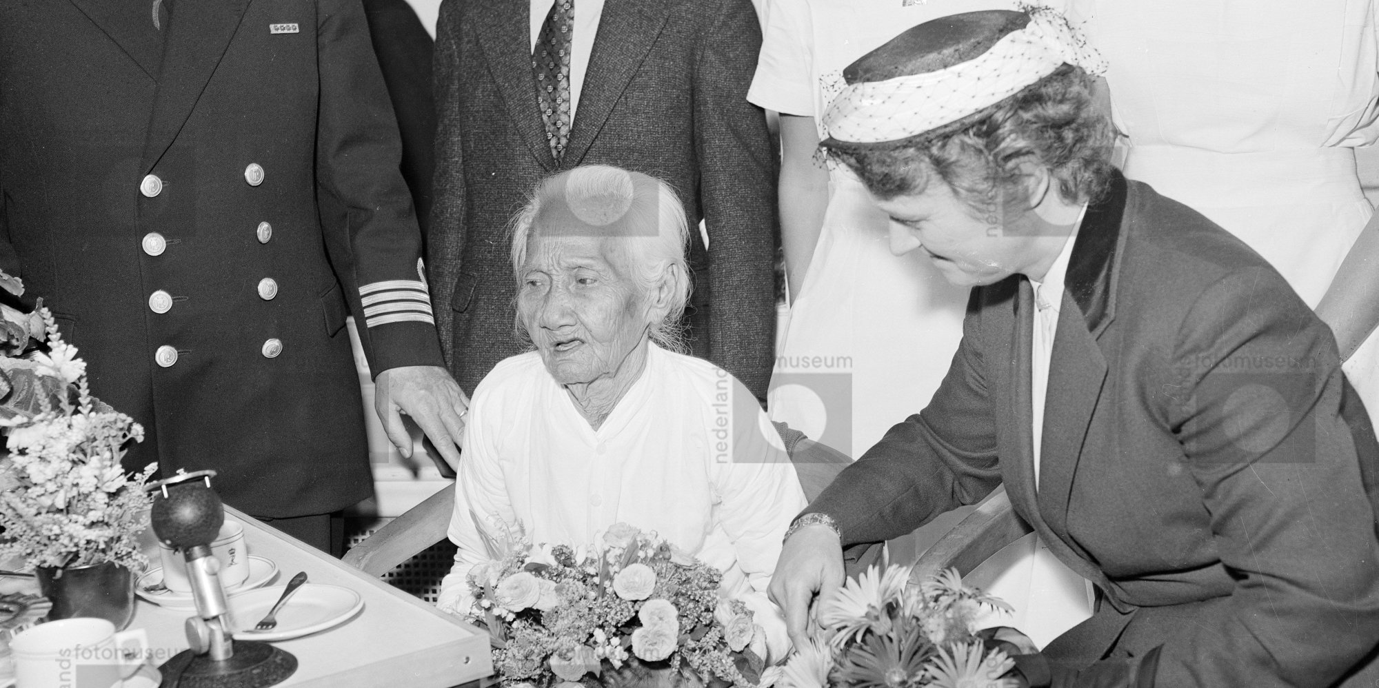 Indonesische vrouw ontvangt bloemen bij officiële ge...