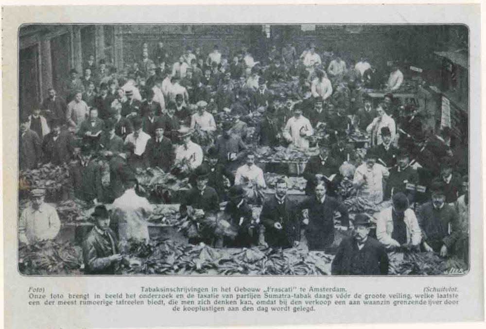 Foto, voorstellende krantenknipsel tabaksveiling, ci...