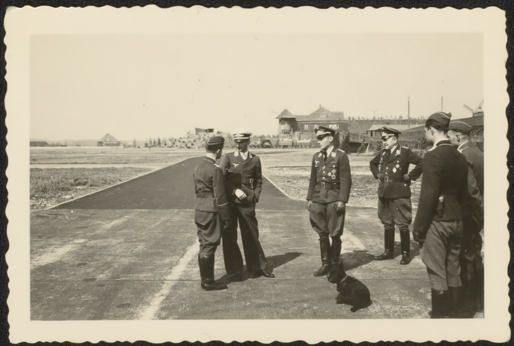 Major Wolfgang Falck (met witte pet) op bezoek op vl...