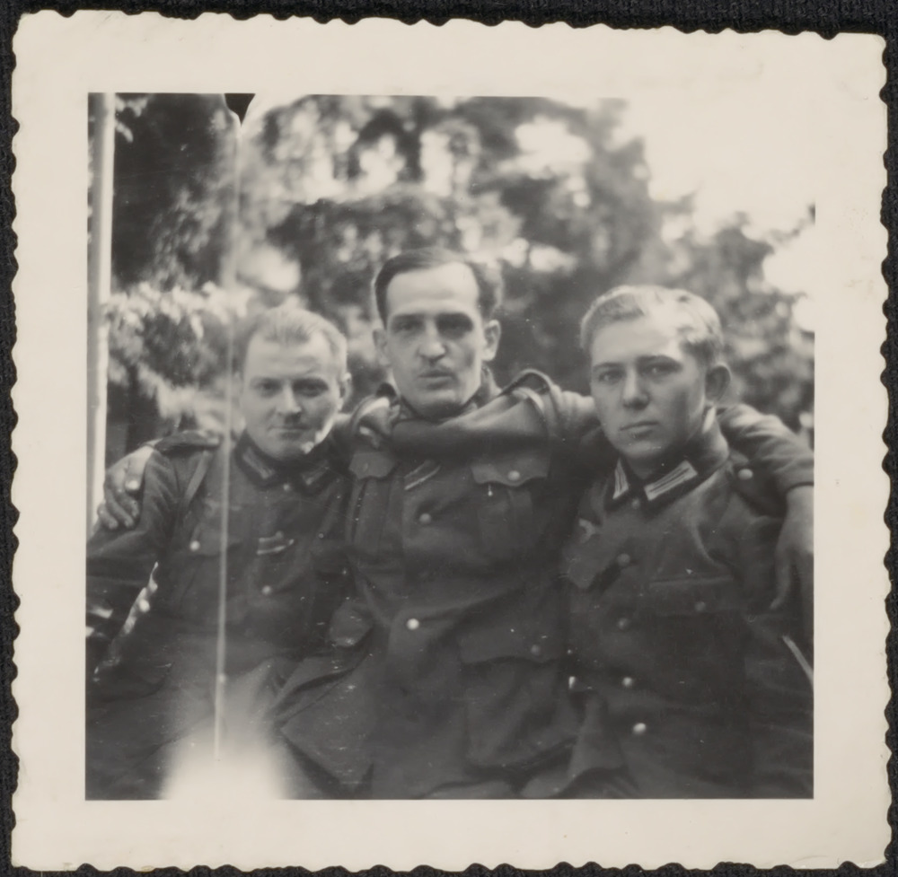 Foto van drie Duitse militairen in Duitsland op 11-8...