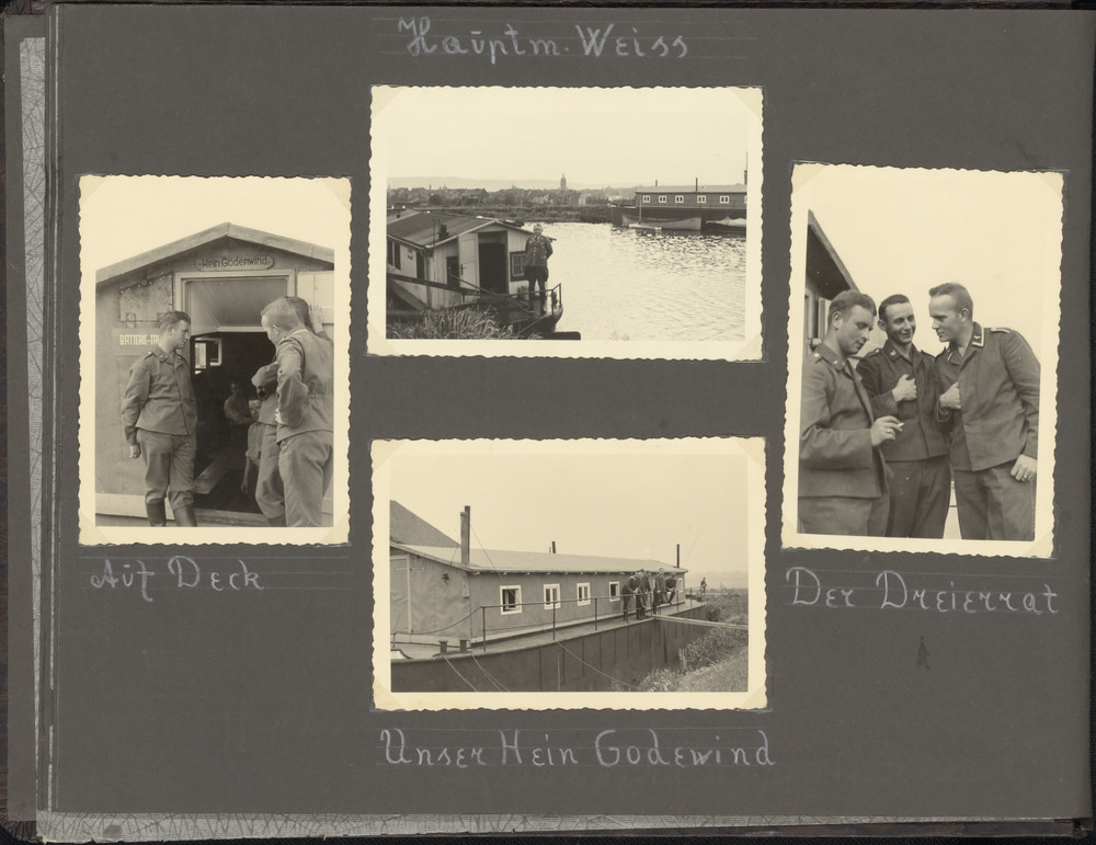 1: Woonboot met Hauptmann Weiss, 2-4: Woonboot genaa...