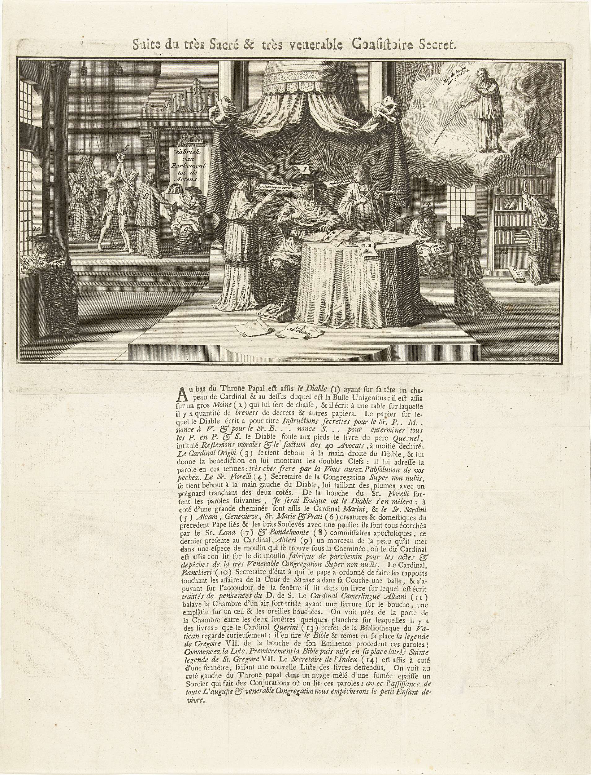 Spotprent met de duivel op de pauselijke troon, 1731