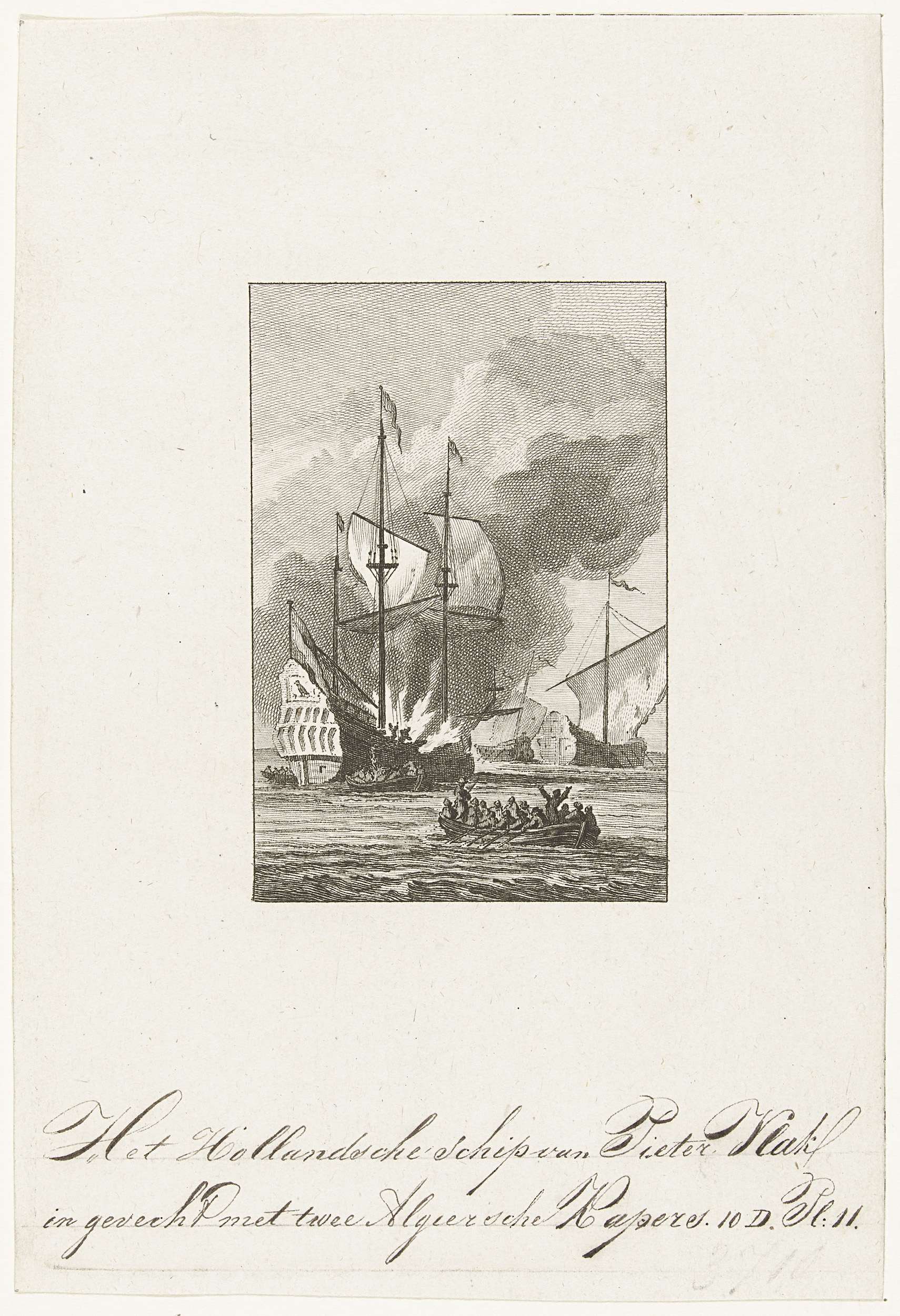 Het schip van Pieter Vlak in gevecht met twee Algier...