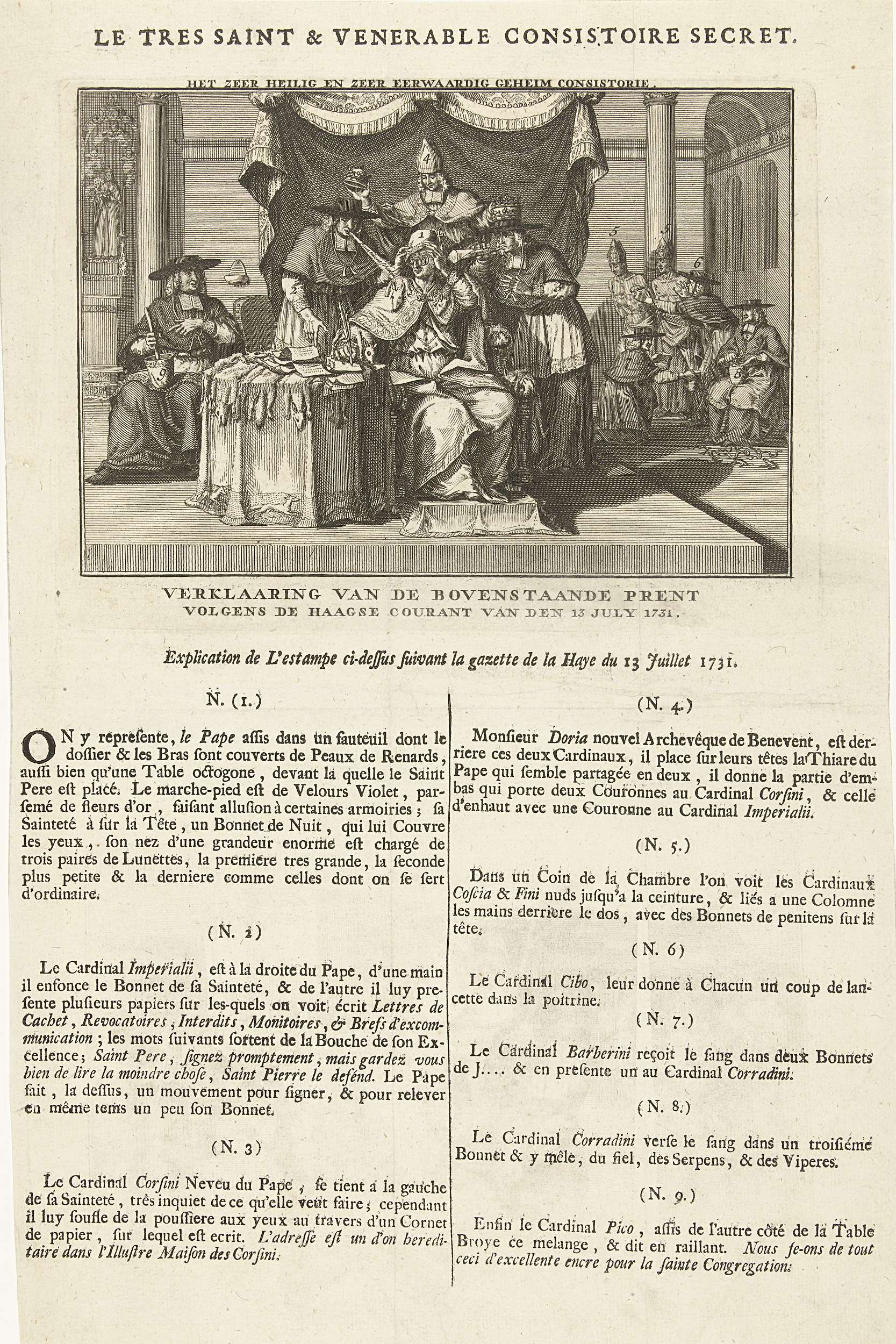 Spotprent op de paus en kardinalen, 1731