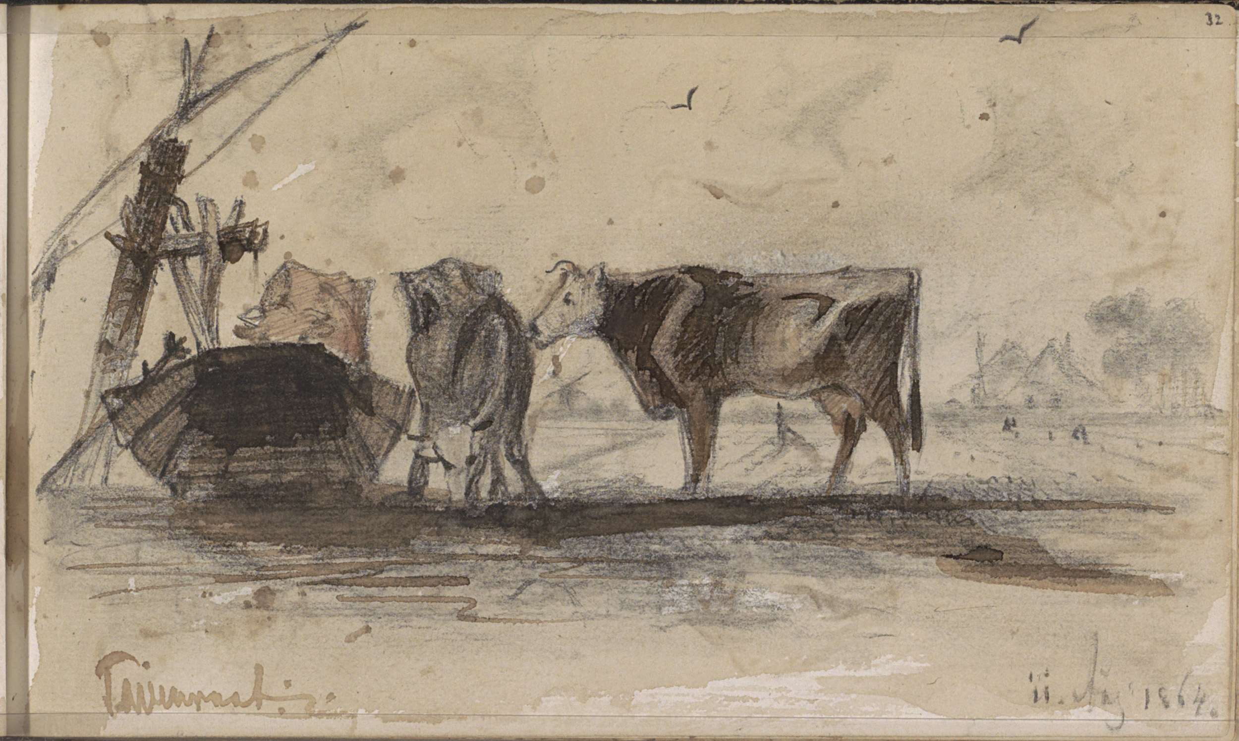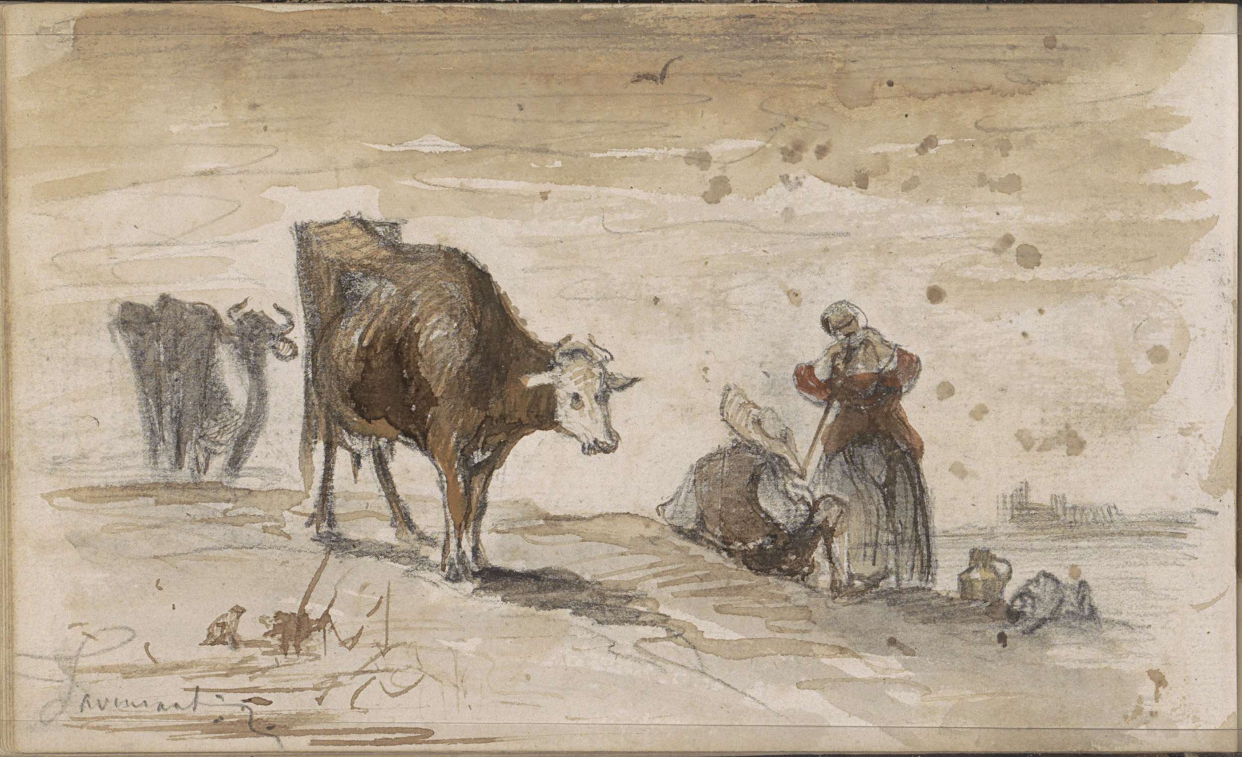 Koeien en figuren op een heuvel