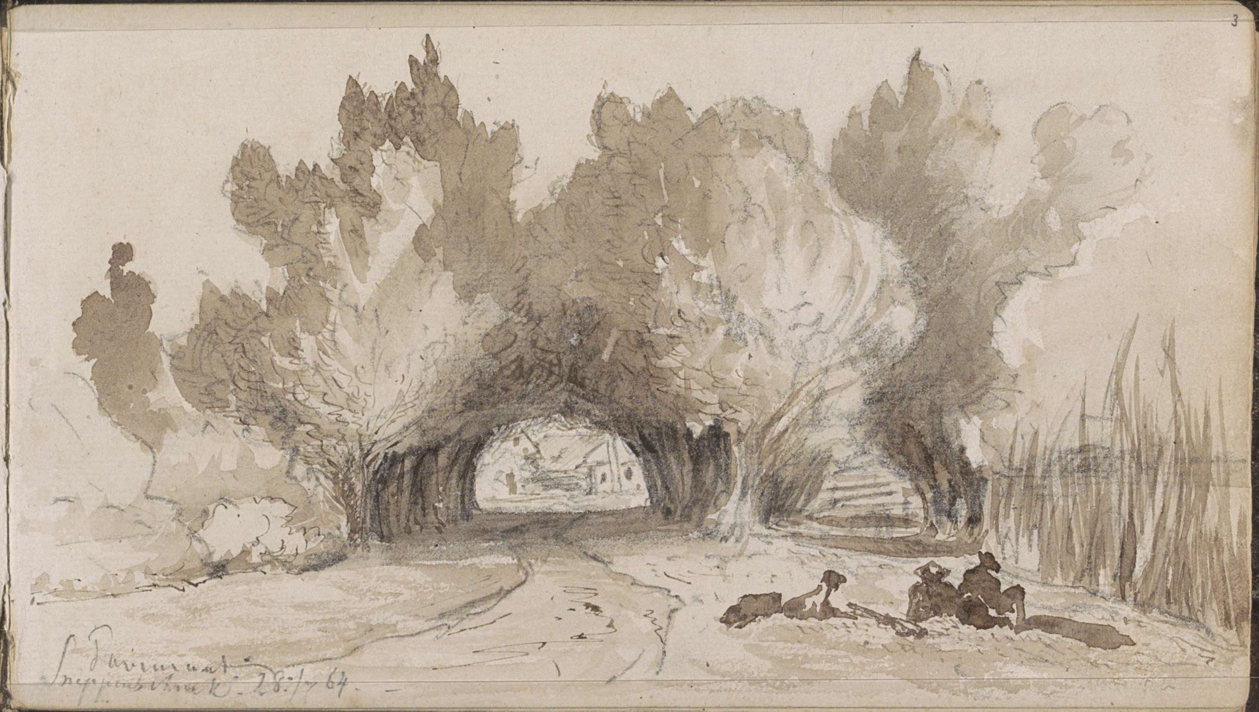 Laan tussen de bomen aan het water bij Sneppenschrik