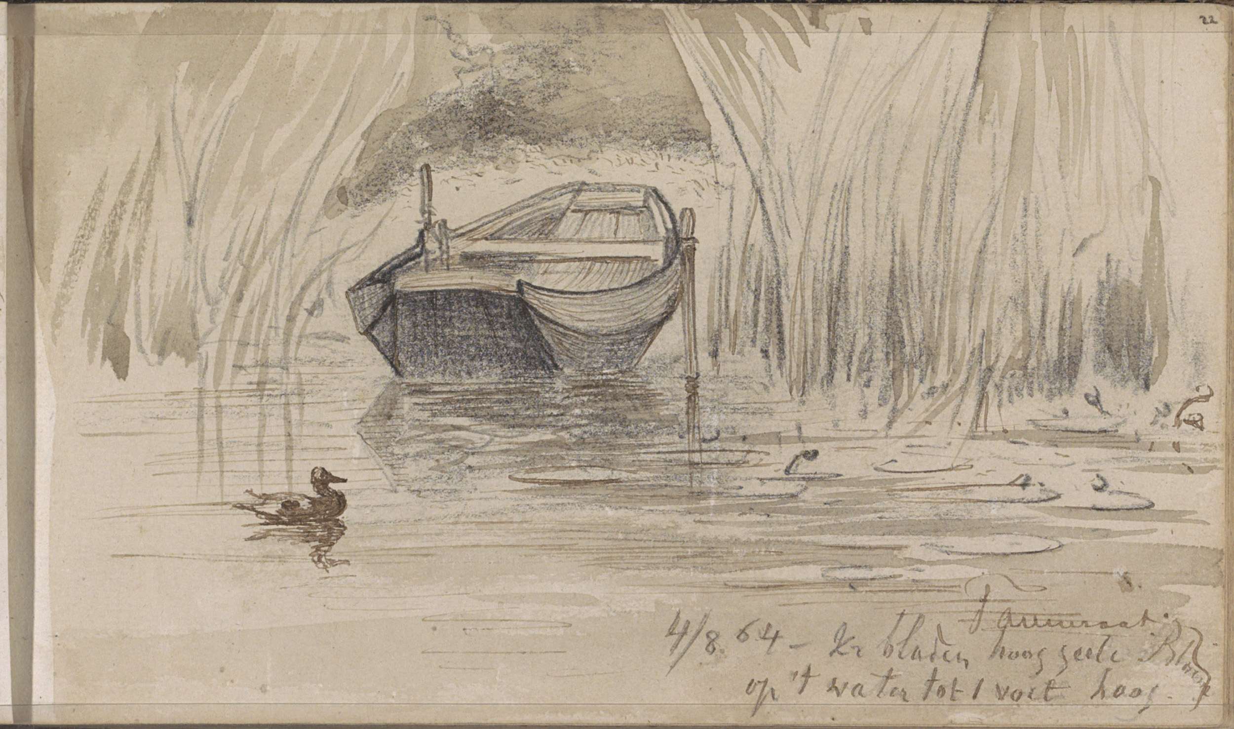 Roeiboot tussen het riet aan de waterkant