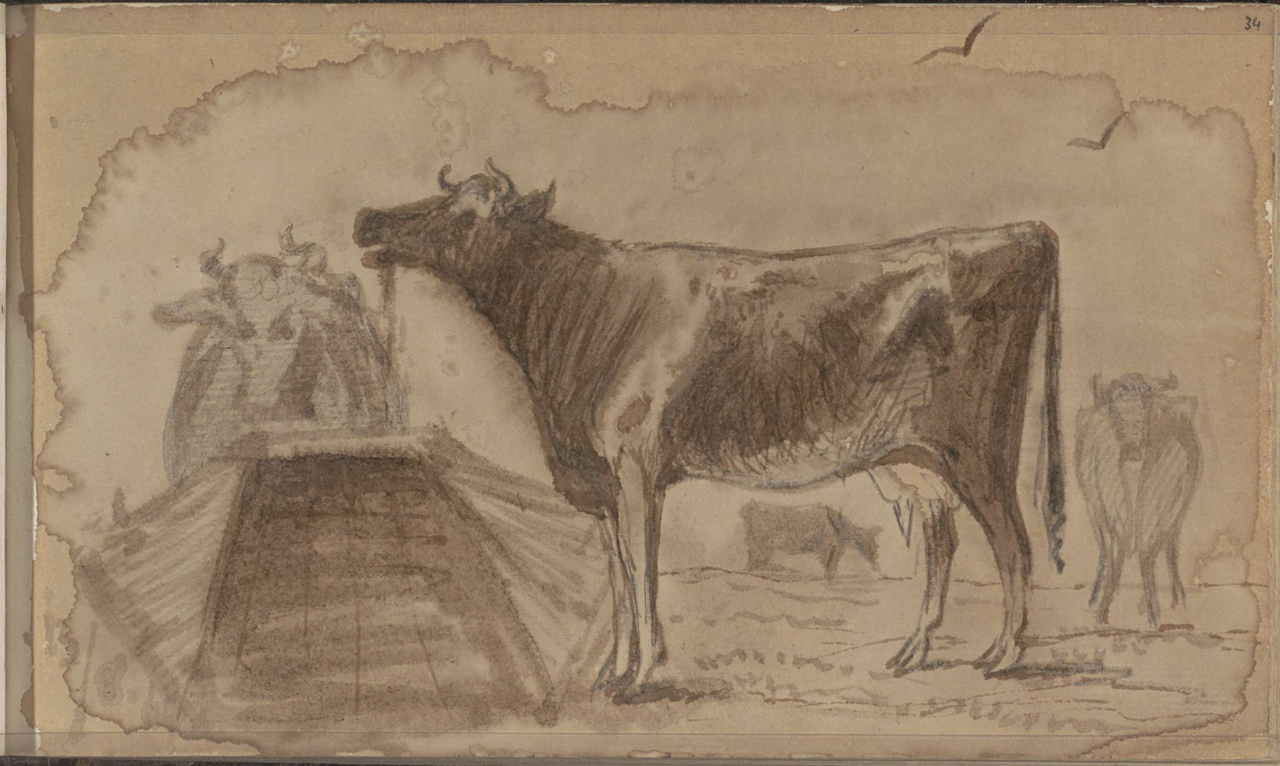 Weiland met koeien bij een trog