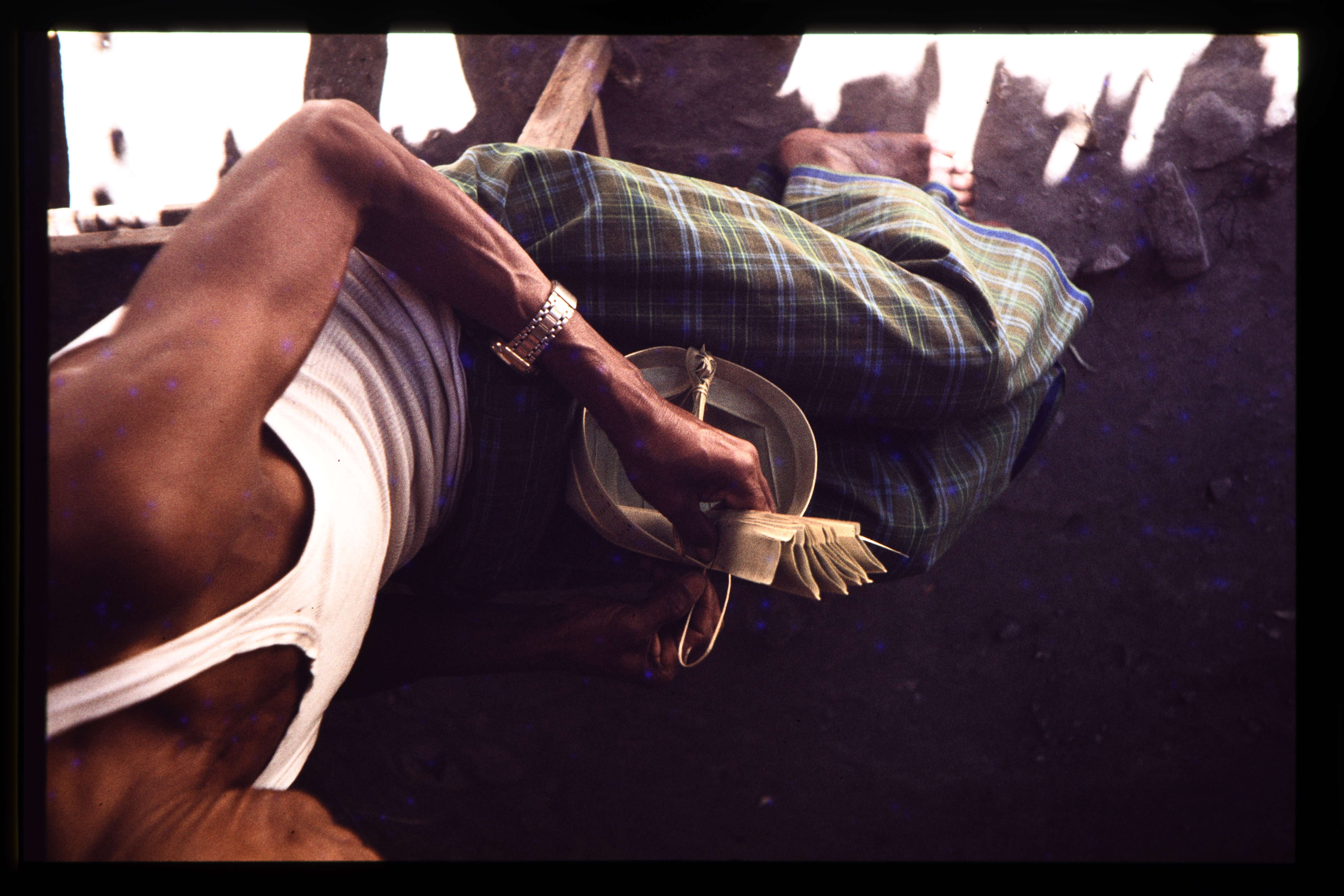 Hand spun and woven cloth hand dyed (resist batik) (4)
