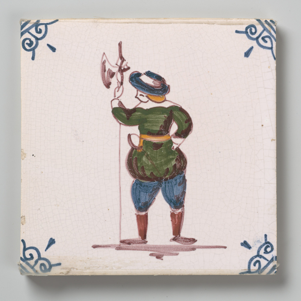 tegel van keramiek met tinglazuur, voorstellende: ke...
