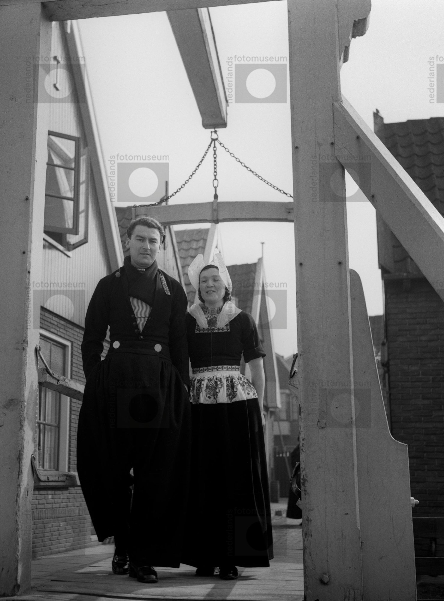 Volendammers in klederdracht op weg naar de zondagsd...