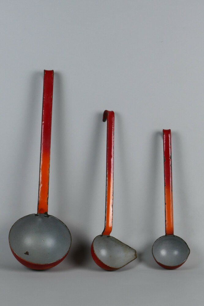 lepelset van geëmailleerd metaal, circa 1900