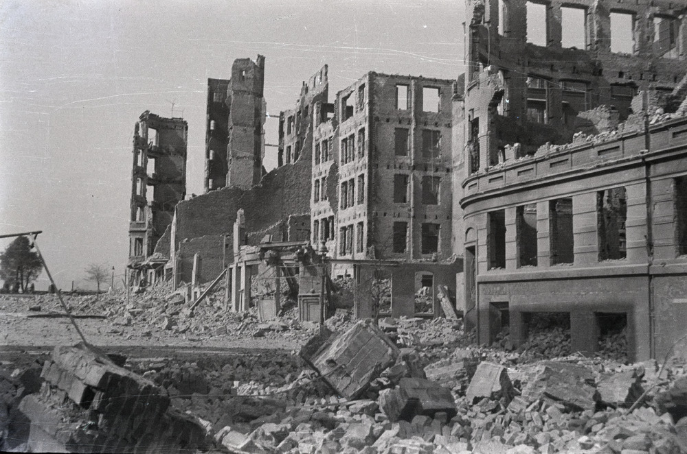 Restanten van gebouwen na bombardementen