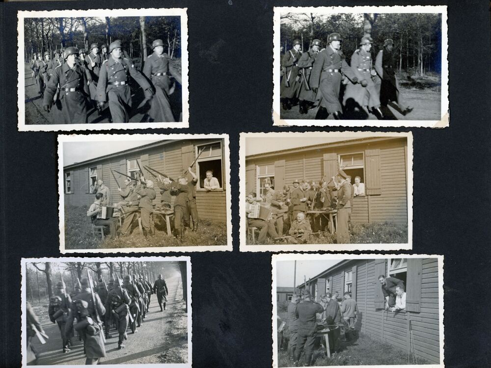 Foto's van Duitse soldaten met bepakking en wapens t...