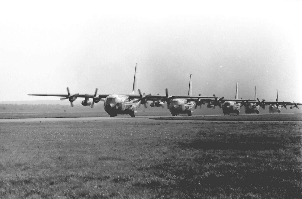 Vijf Lockheed C-130K van de Royal Air Force waaronde...