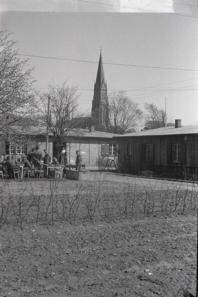 Na diensttijd ontspanning tussen de barakken. In de ...
