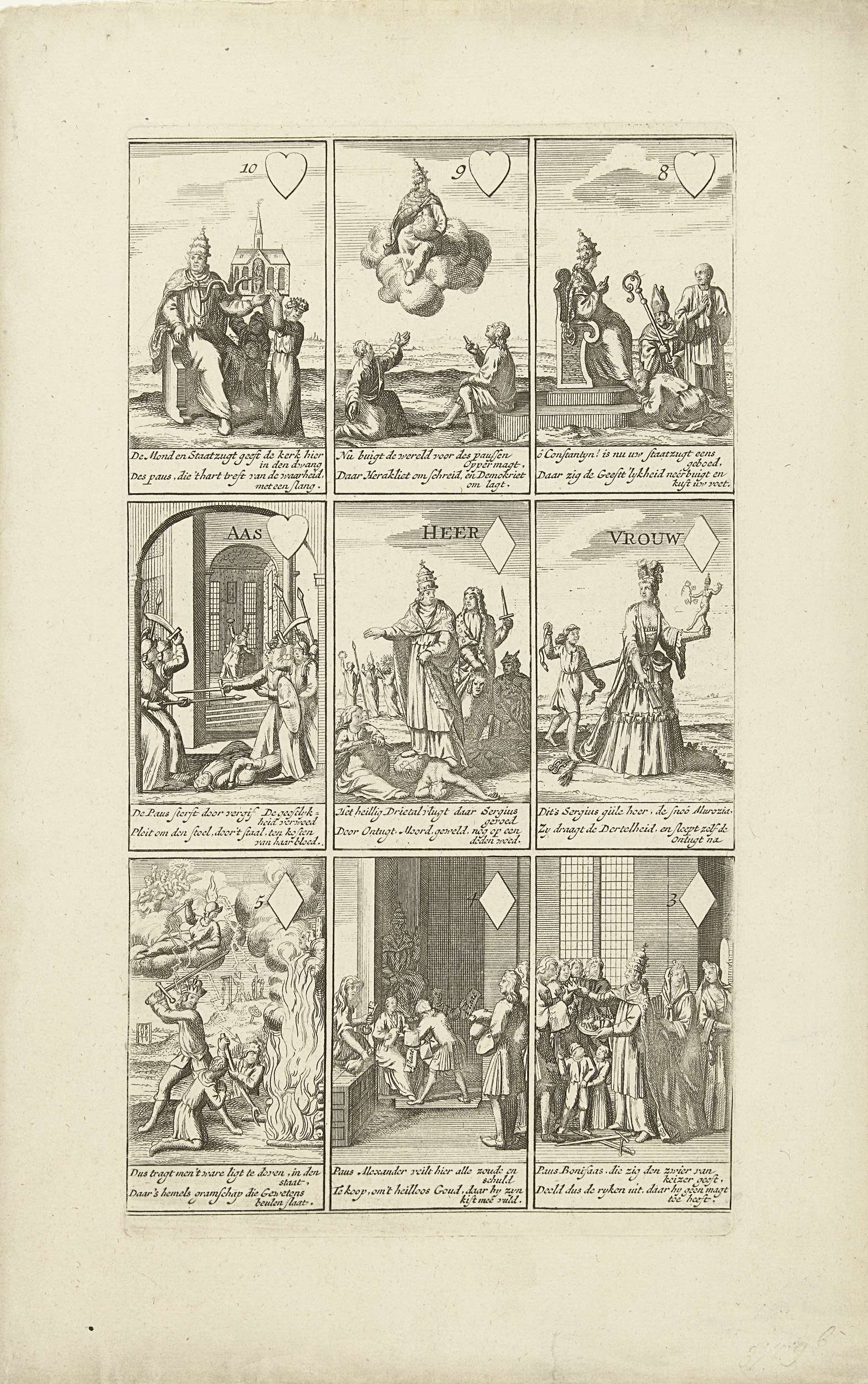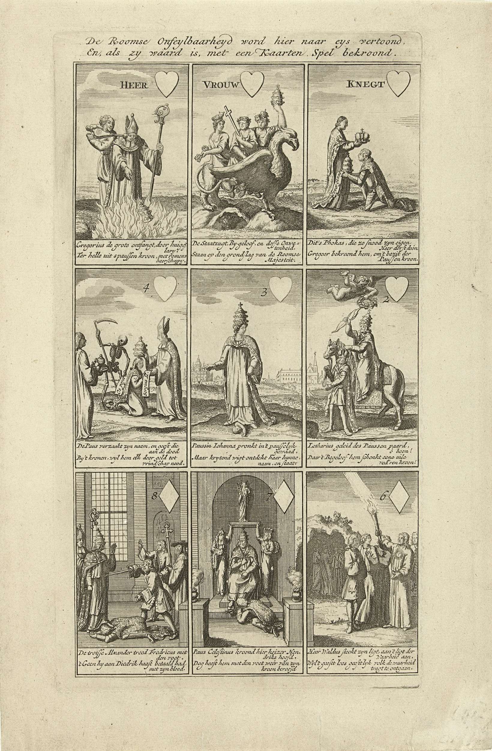 Negen kaarten met spotprenten op de Roomse Onfeilbaa...