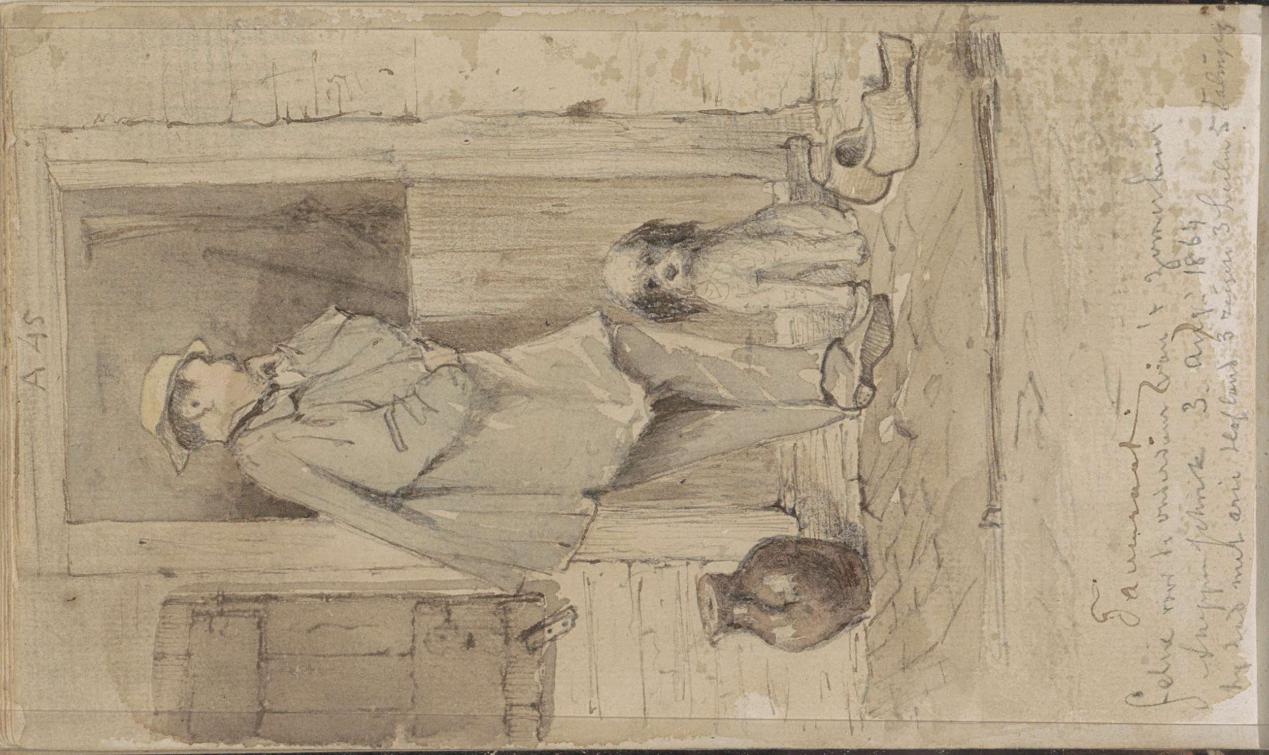 Zoon Felix voor de onderdeur van het zomerhuis Snepp...