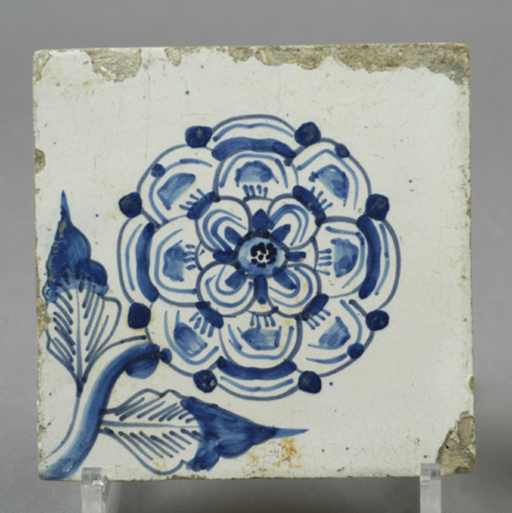 Tegel van keramiek, tinglazuur, voorstellende een bl...