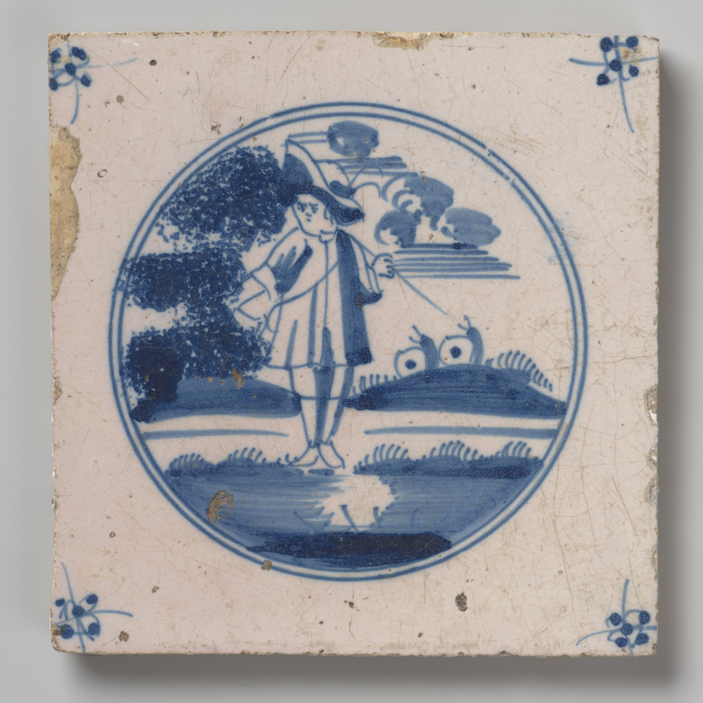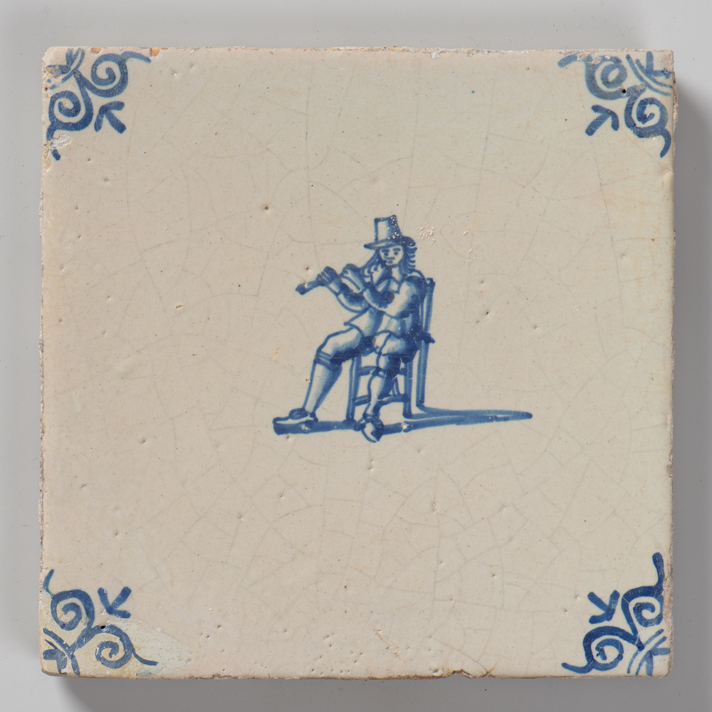 tegel van aardewerk met tinglazuur, voorstellende: h...